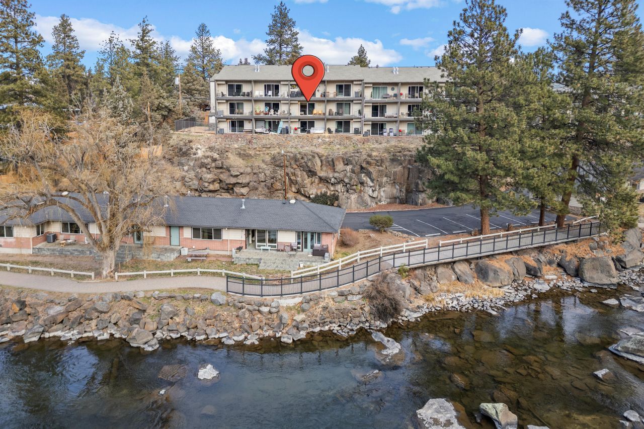 Wake up to sweeping views of the Deschutes River in the heart of downtown Bend. This turn-key second-floor condo offers approved short-term rental capability and a lock-and-leave lifestyle, with convenient access to Bends renowned dining, shopping, trails, and year-round events. The bright kitchen and living area are positioned to capture the river views and include a Murphy bed for accommodating additional guests. The primary suite features an attached bathroom with a tiled shower for added privacy and comfort. Ideal as a primary residence, second home, or income-producing vacation rental, this low-maintenance property offers effortless ownership. HOA dues include utilities, cable, and exterior maintenance.