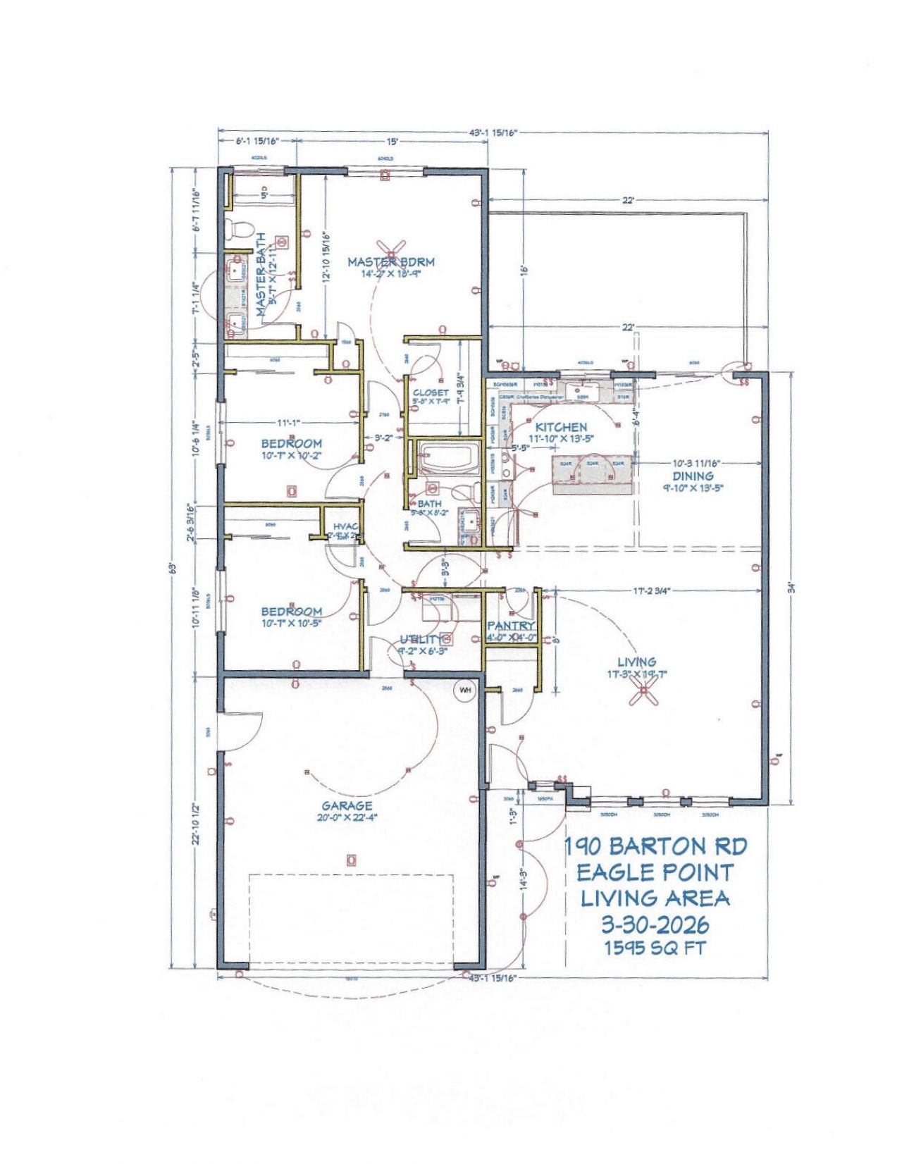 Beautiful new construction in Eagle Point with attractive views to open space! This thoughtfully designed home offers 1,595 sq ft with a desirable floor plan, 3 bedrooms, 2 baths, and quality finishes throughout. Enjoy durable LVP flooring, soft-close custom cabinetry, and solid surface counters in both the kitchen and bathrooms. The open-concept living, dining, and kitchen areas create a bright and functional layout for everyday living and entertaining. Spacious primary suite, pantry, utility room, attached 2-car garage, and RV parking add to the appeal. A stylish new home with a comfortable layout, modern finishes, and peaceful setting.