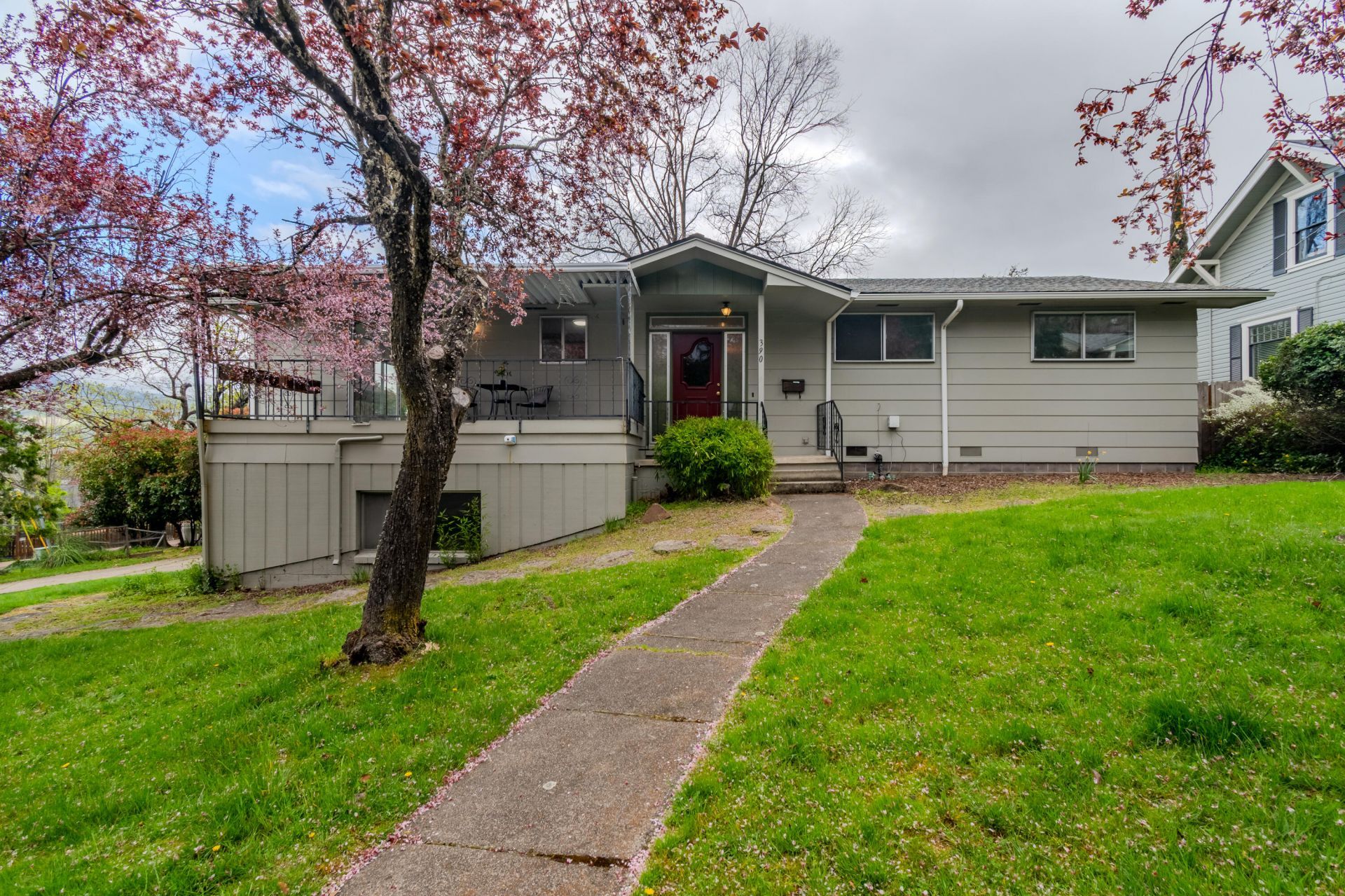 Bright, spacious, & ideally located just minutes from downtown Ashland, shopping, & theater! This 3 bedroom, 2.5 bath home offers 1,836 sq ft of sunny living space with an inviting, open feel. Enjoy brand new carpet in the bedrooms & stylish luxury vinyl plank flooring throughout the rest of the home. Thoughtful updates include new toilets, vanities, light fixtures, recessed lighting, & a ceiling fan. The living area features big picture windows, a cozy fireplace, & sliding doors that open to a welcoming front patio--perfect for enjoying the beautiful cherry blossoms in spring. Downstairs, a versatile family room with its own separate entrance offers great potential for guests, a home office, or multi-generational living. Outside, youll find a deck & stairs to a fenced backyard, plus RV or boat parking. A double car garage with storage & a workbench adds convenience. Located just three blocks from Siskiyou Blvd, this home blends comfort, updates, & an unbeatable Ashland lifestyle!