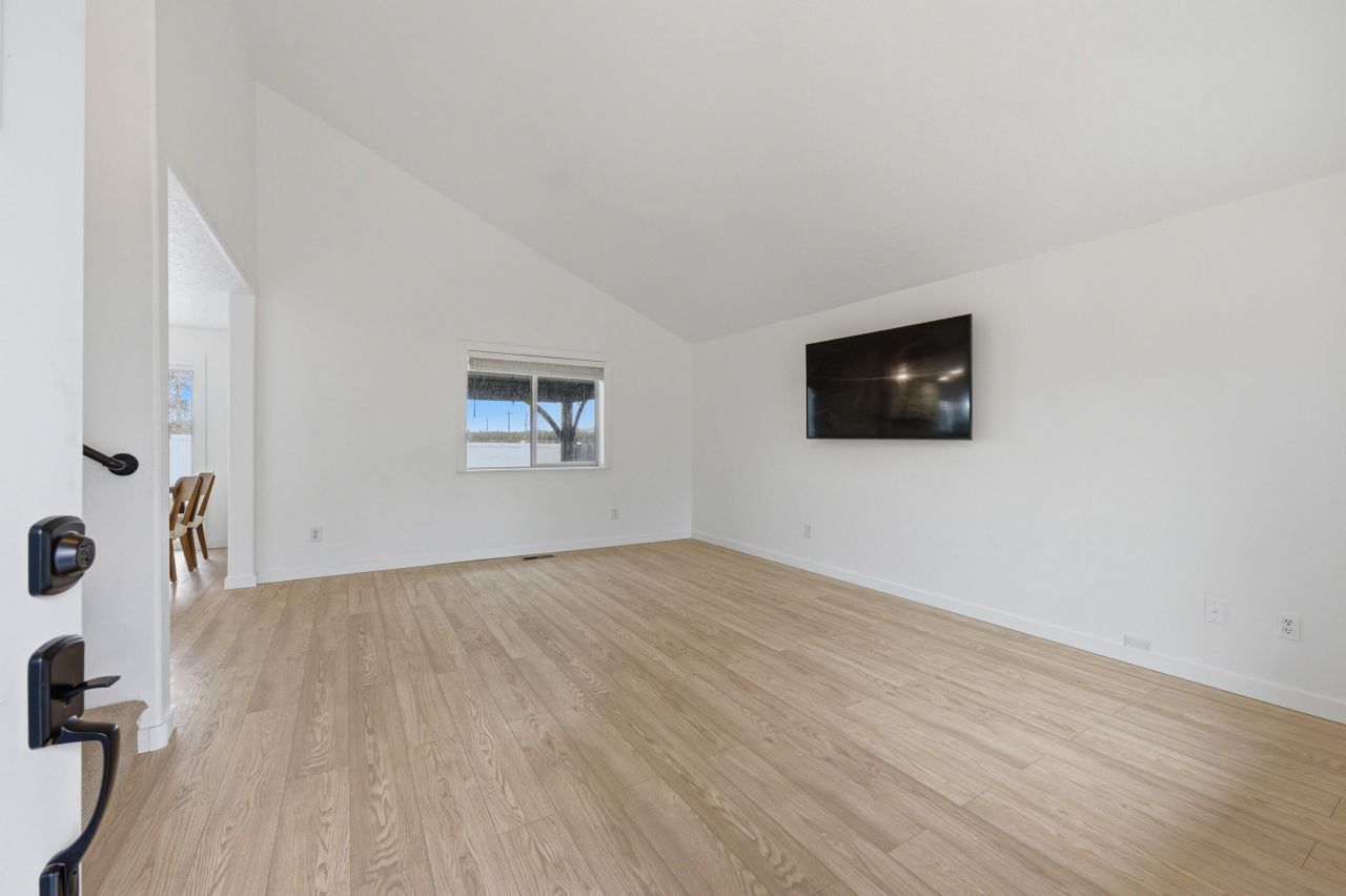Step into this adorable, two-story home at the South end of La Pine! This open floor plan offers 1,370 square feet of living space that feels even larger. Interior features include: vaulted ceilings, heat pump/central air, new flooring, new interior paint, updated laundry area w/ shiplap details, updated bathrooms, new lighting fixtures and brand new kitchen complete with custom, soft-close cabinetry, island with pull-out spice drawer, new stainless steel appliances, tiled backsplash, granite countertops, and ample storage, including a pantry. Enjoy the mountain views from the completely fenced and landscaped backyard, featuring a new sprinkler system and gazebo with a concrete patio. Other exterior features include: new exterior doors, new roof in 2025, new exterior paint, storage shed, and additional paved parking with room for an RV. Great location minutes from City Center, perfect for all-year-round living or as a residential income opportunity.