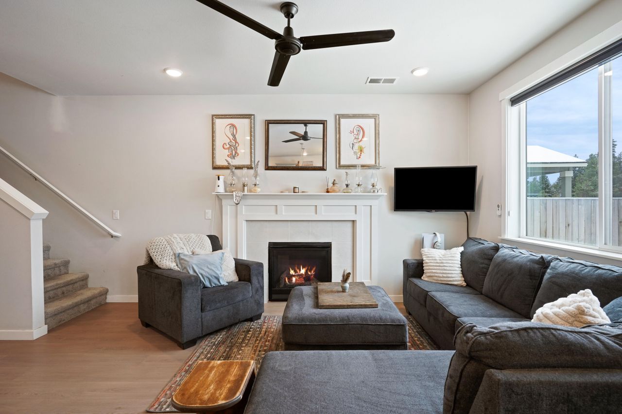 Central Oregon Adventure Meets Comfortable Everyday Living! This 3-bedroom, 3-bath home offers great style for buyers looking to enjoy the Central Oregon lifestyle with modern design and quality finishes. The light-filled open-concept layout features a stylish kitchen with quartz countertops, stainless steel appliances, an oversized island, pantry, and craftsman-style cabinetry, perfect for gathering after a day exploring nearby rivers, lakes, and trails. Upstairs, the vaulted primary suite and two additional bedrooms enjoy peek-a-boo views of the buttes. Additional highlights include air conditioning, a two-car garage with a workbench, and a fully fenced backyard with a fire pit and fruit trees, ideal for relaxing or entertaining. Located near a community park and just minutes from local shops, schools, and everyday services, this home offers a great balance of style and convenient living.