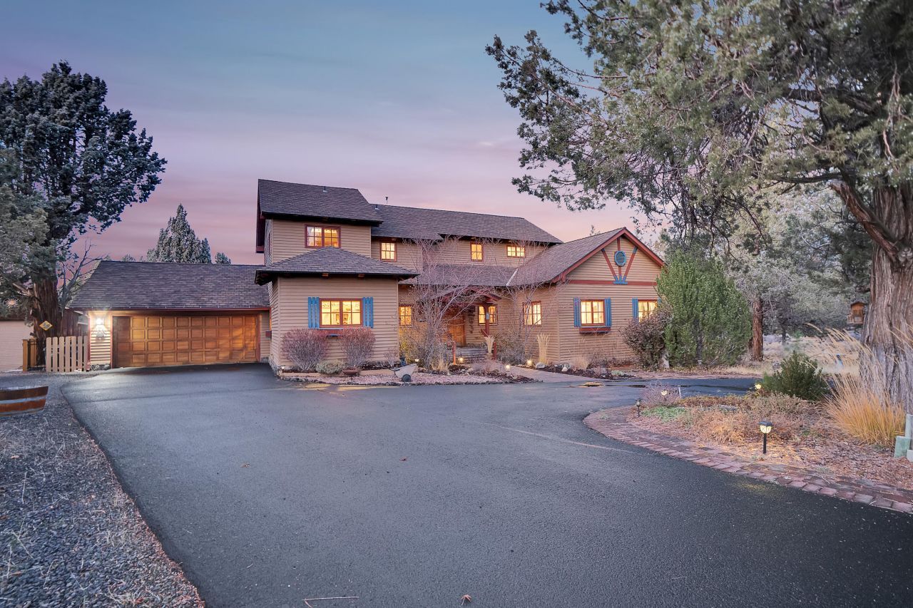Set in the quiet Boonesborough area and backing to BLM land, this beautifully developed 2.67-acre property offers privacy, open space, and everyday convenience. The 3,321-square-foot home features four bedrooms and three baths with light-filled living areas, warm wood flooring, timber accents, and a pellet stove accenting the living room. The well-appointed kitchen offers generous workspace and storage with a functional layout. An expansive new Trex deck extends outdoor living and connects to a patio beneath a gazebo, ideal for entertaining or quiet evenings. The landscaped grounds include a pickleball court, tranquil pond, and Scandinavian cook house. A 2,200-square-foot garage includes a finished activity room, shop, space for RVs or boats, and an electric vehicle outlet. A fenced corral with covered stalls provides flexible use. Located near shopping, dining, the airport, and trails, this property captures Central Oregon living with room to unwind and explore.